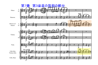 (7) 第3楽章 Trio の部分でbass.と fg. のsoloが入るがva.のsoloは入らない。